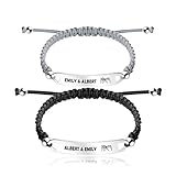 - Custom Engraving ID Bracelets : Couples Bracelets customized with name, promise words,initials, inspirational, love messages, roman numerals, coordinate, meaningful date or symbols, no matter what’s you say, it can be engraved on the bar bracelet to pass your love.The shiny zircon on the engraving board symbolizes your perfect love.