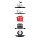 - Stylish & Functional 5-Tier Corner Shelf: The height of the corner shelf stand is 44 1/8", the shelf radius is 11 3/8", and the space between each shelves is 9 13/16". This kitchen shelf organizer provided plenty of vertical storage in kitchen without taking up much precious floor space. The five tiers give lots of room for oil bottles, blenders, spice jars, canned food, salt and pepper grinder, pots and pans, etc. Achieve a clean and orderly kitchen with Greatseas kitchen organization and storage rack